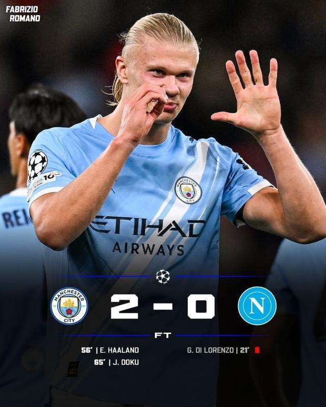 曼城2-0那不勒斯