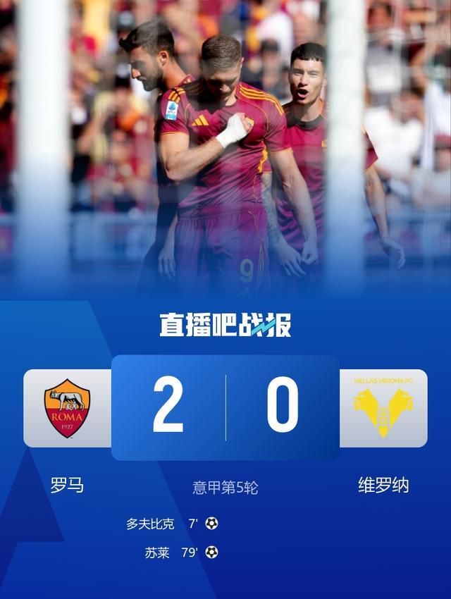 9月28日讯 北京时间9月28日21时,意甲第5轮,罗马坐镇奥林匹克球场迎战维罗纳。上半场,切利克助攻多夫比克破门。罗马半场1-0领先维罗纳。下半场,苏莱打进一球。最终罗马2-0击败维罗纳,近5轮取得4胜,仅失1球,罗马暂升至积分榜第二。