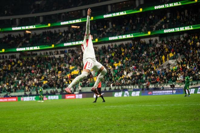伤停补时第10分钟,谢维军(左)的进球帮助津门虎战平长春亚泰
